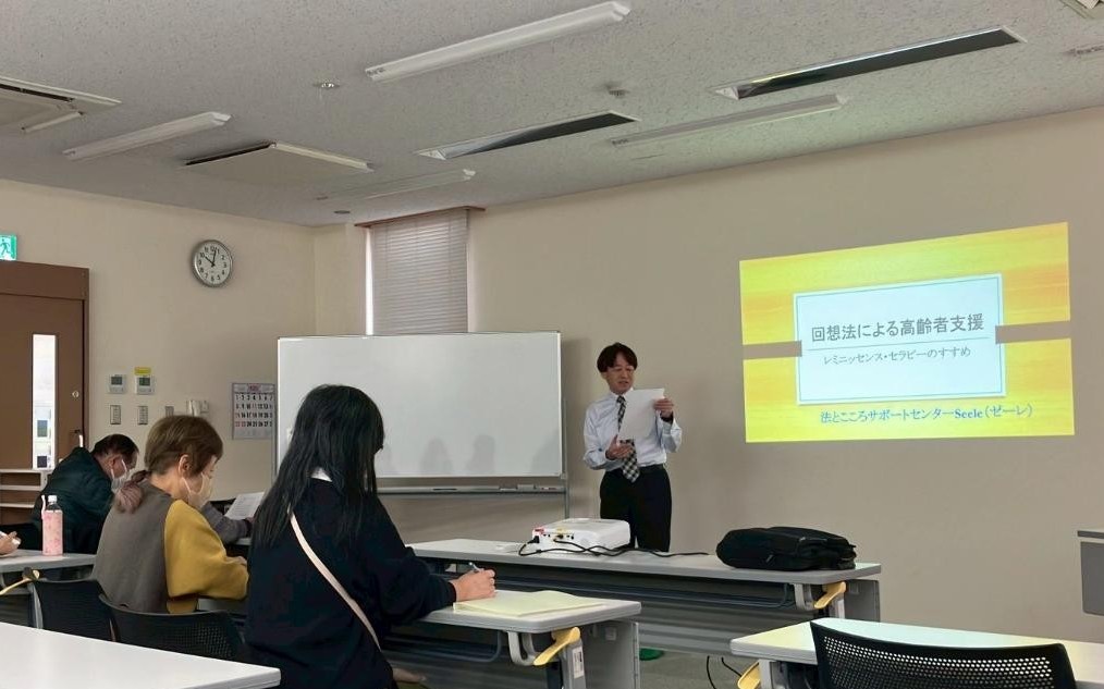 テーマは「回想法による高齢者支援」で、回想法とは何か、実施の目的(認知症予防)や方法について、お話しました。